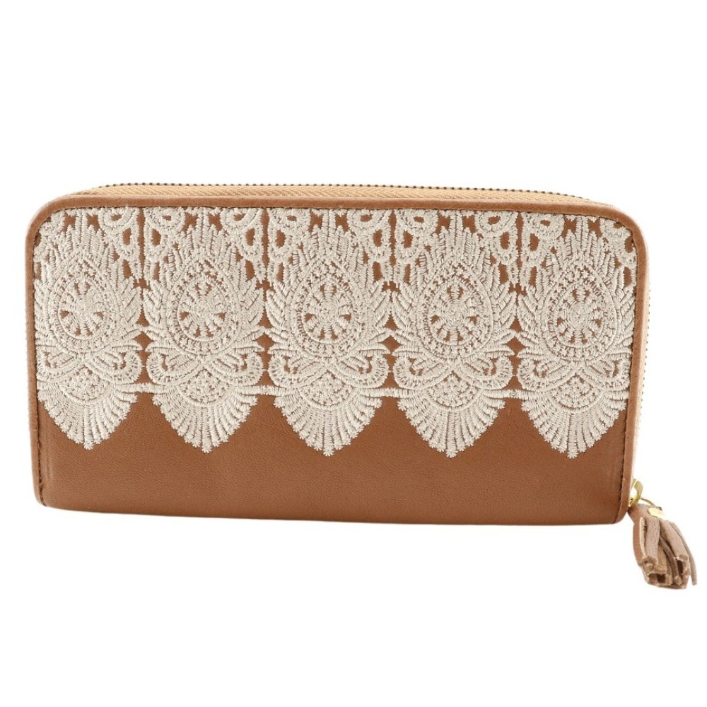 > Endymion Spring エンディミオン・スプリング 本革刺繍 ラウンドファスナー 長財布 茶色 レディース【Y192724181】未使用