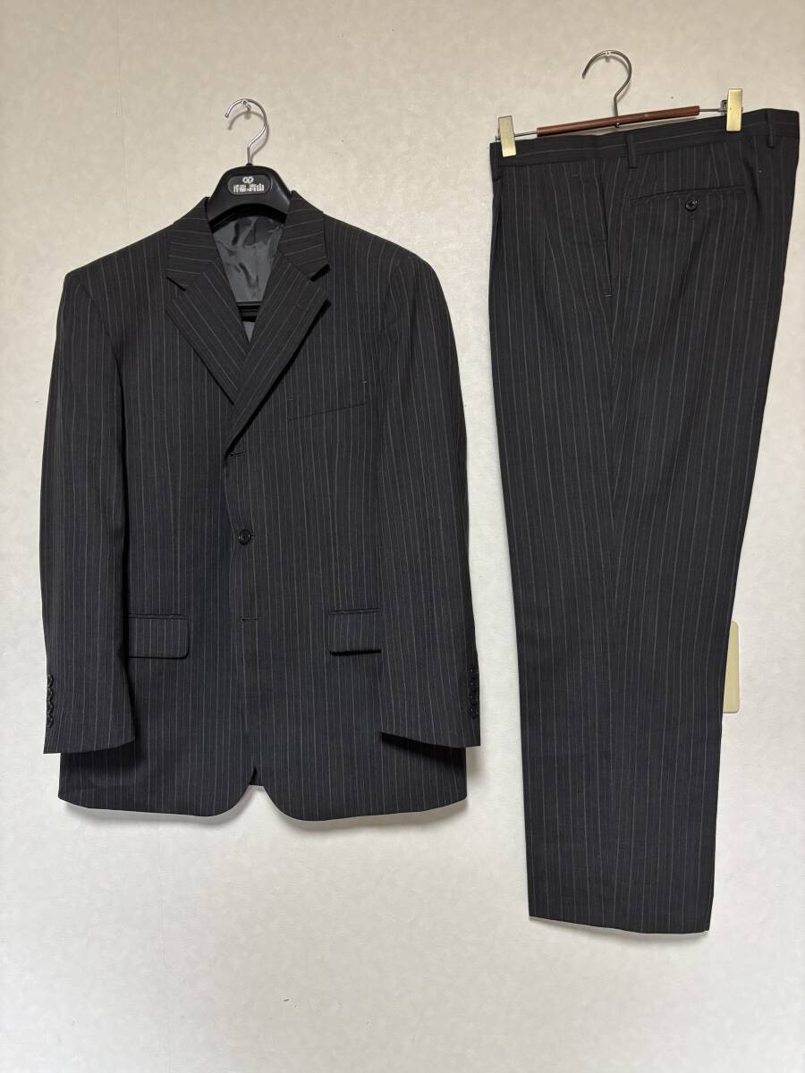 > アーヴェヴェ ミッシェルクラン オム【極美品】ビジネス スーツ大きいサイズBE5がっしり体グレーqkqストライプ春夏秋a.v.v MICHEL KLEIN