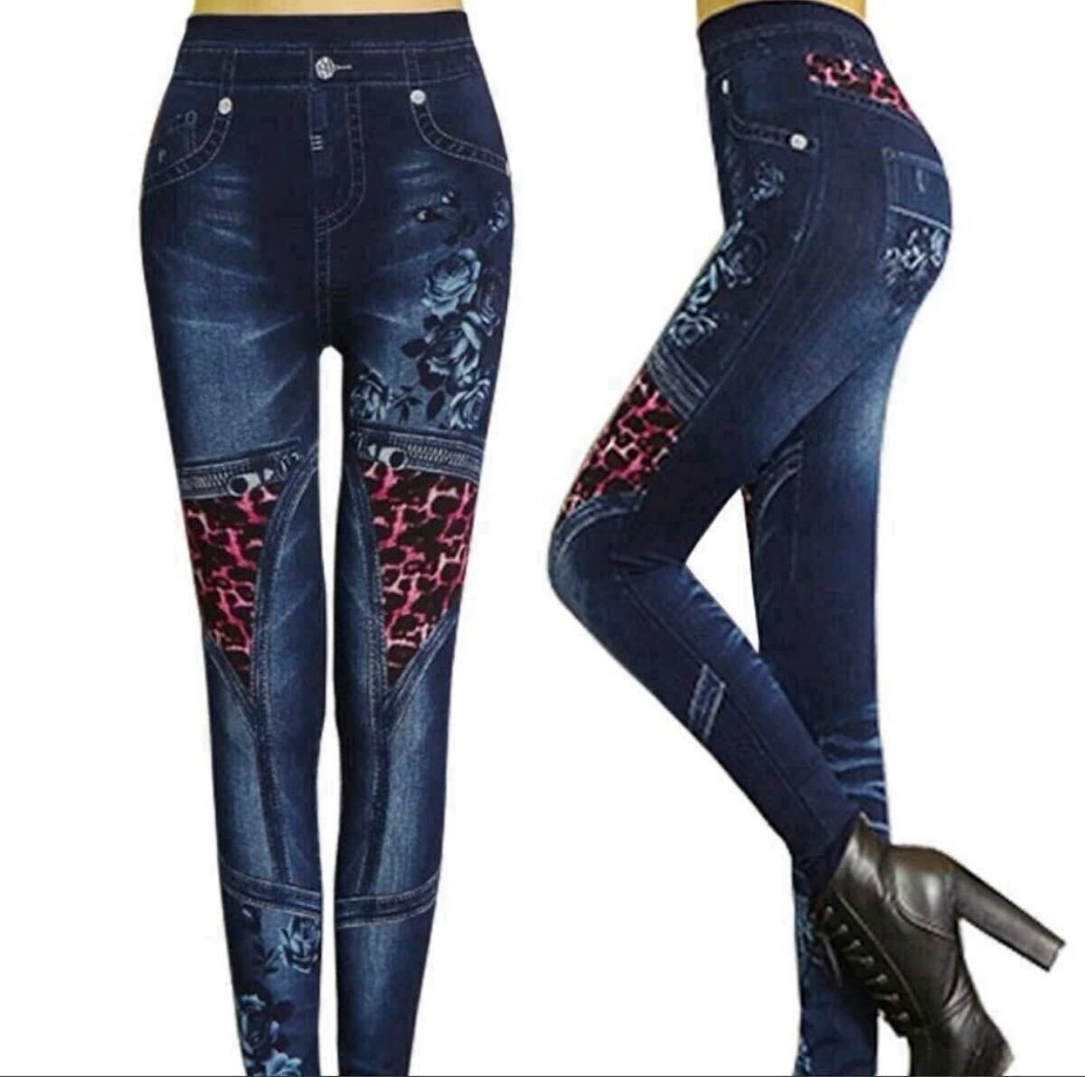 - LL レディース ジーパン風ズボンストレッチ伸びる裏起毛 暖か 柄入り可愛い デニム風パンツ