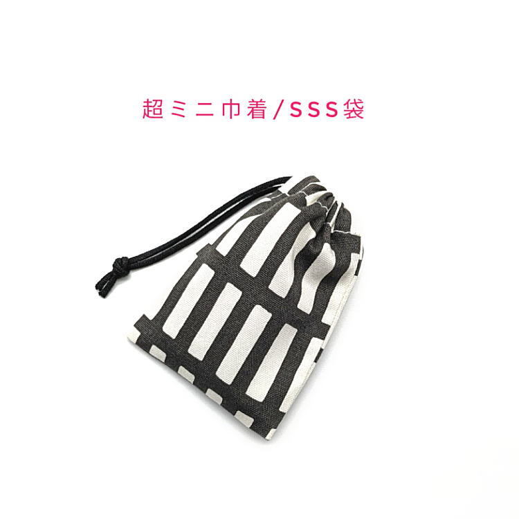 - 超ミニ巾着袋・SSS袋【北欧風 レクタングル柄 くすみブラック】マチ無し 日本製 巾着 ポーチ 小物入れ 格子 ブロック タイル チェック 四角