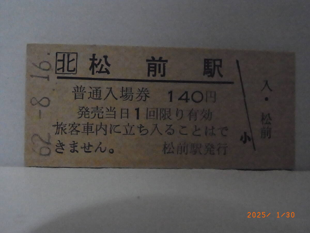 - JR北海道 松前線 松前駅 140円普通入場券 昭62.8.16 1355 ★送料無料★