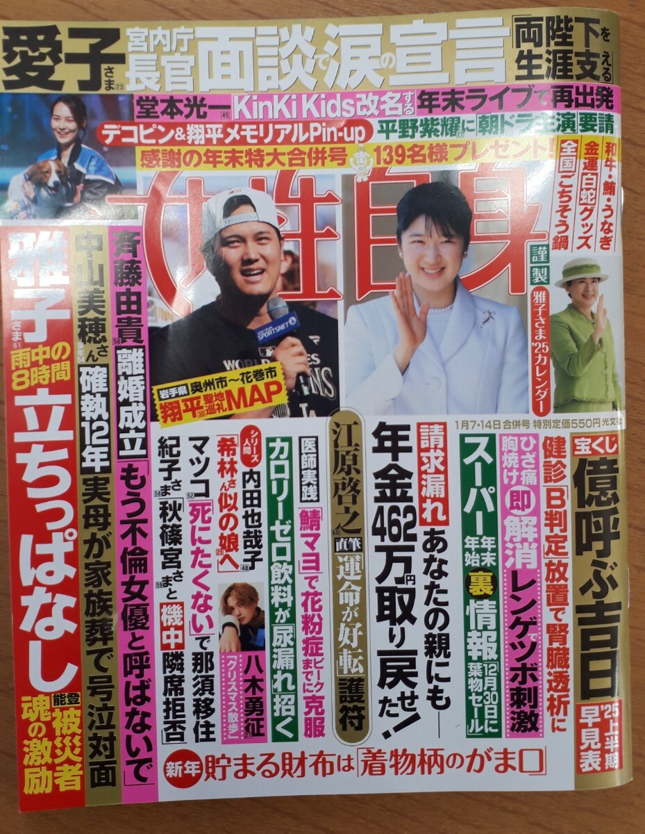 > 女性自身 2025年1月7日・14日合併号 雅子さまカレンダー 年金462万円取り戻せ! デコピン&翔平メモリアルピンナップ