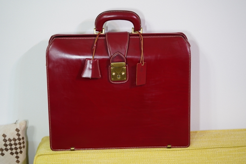 - 赤 レッド レザー ダレスバッグ 鍵付き ITALY イタリア製