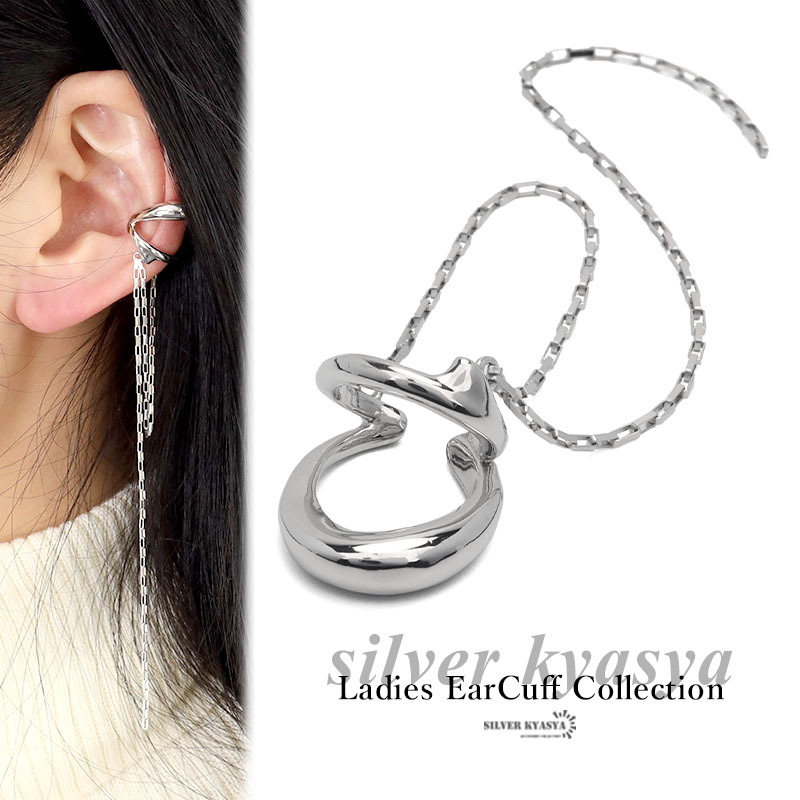 > イヤーカフ フリンジ イヤリング イヤカフ シルバー925 ロング チェーン 揺れる メタル 2連 変形 ライン シルバー 片耳用