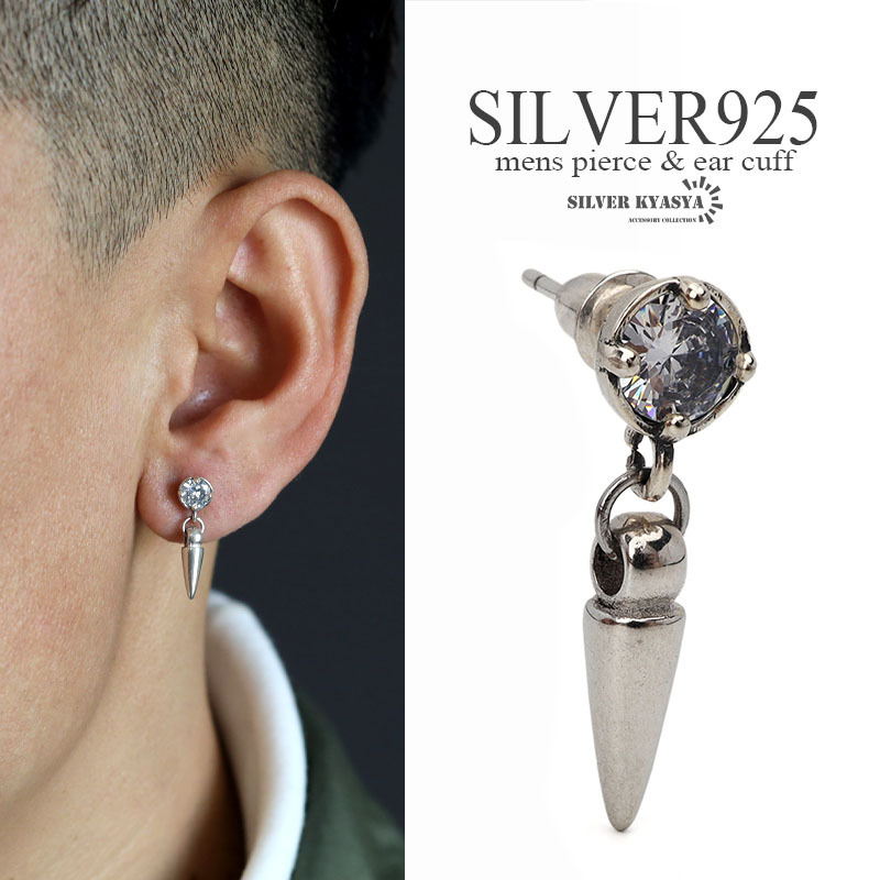 - シルバー925 スタッズピアス キラキラ ジルコニア 一粒ピアス 揺れる シルバーピアス 金属アレルギー 対応 片耳用