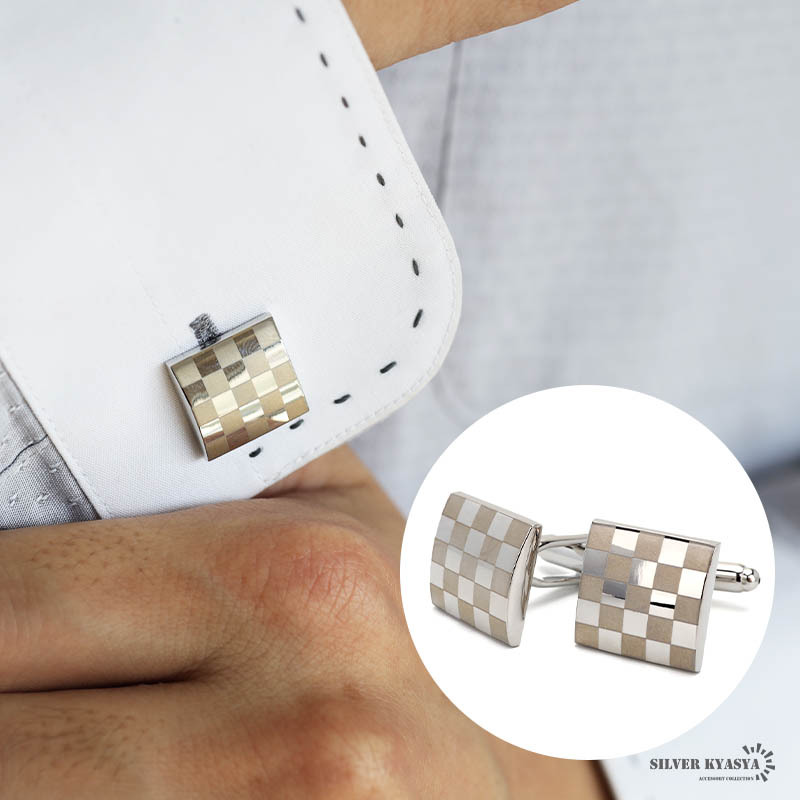 - カフリンクス カフスボタン 2個セット メンズアイテム チェック 市松模様 高級感 プチプラ