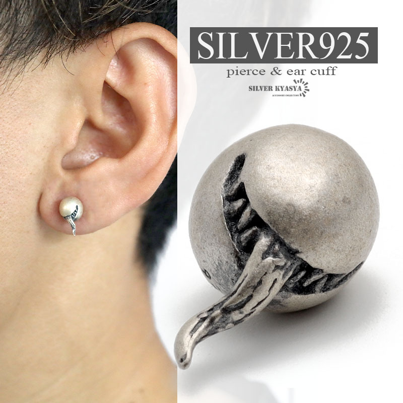 - メンズピアス シルバー925 ゴースト 舌 小ぶり スタッドピアス 金属アレルギー 18G 刻印 片耳用