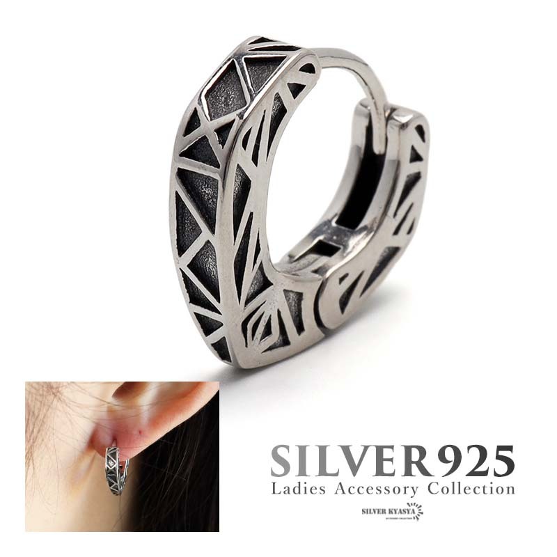 - 幾何学模様フープピアス ハート型 ハートピアス 個性的 シンプル かわいい シルバー925 片耳用