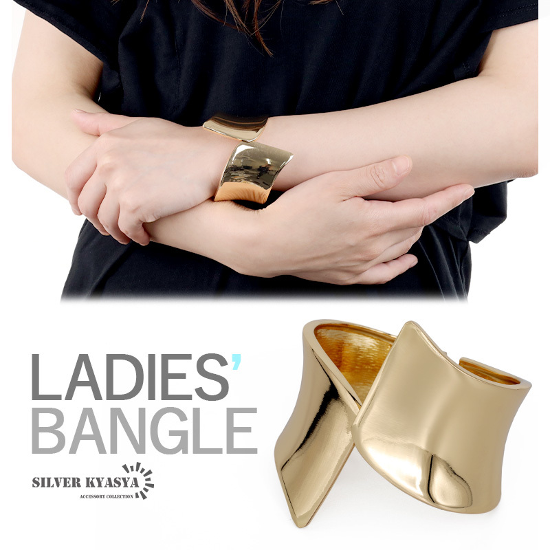 > ワイドバングル シンプルバングル 太め 幅広 太めバングル 大ぶり ゴールド 開閉式 カジュアルバングル 腕輪 レディース