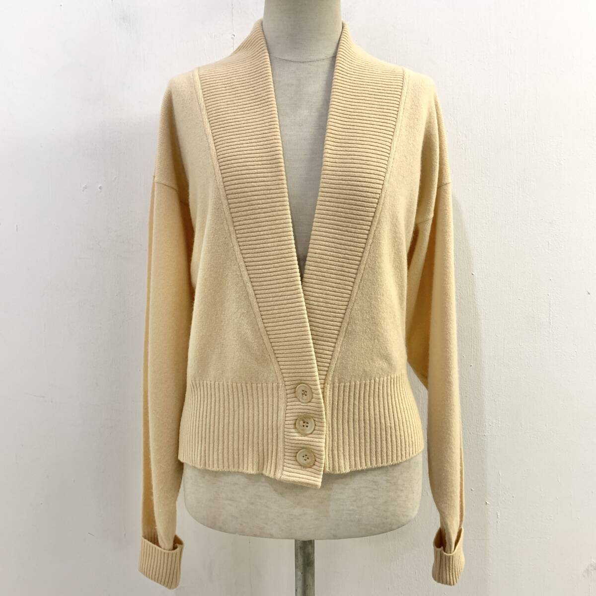 - ☆上質 JAEGER イエーガー 英国製 カシミヤ100% リブニットカーディガン ペールイエロー系 サイズ36インチ【送料一律/同梱可能】L