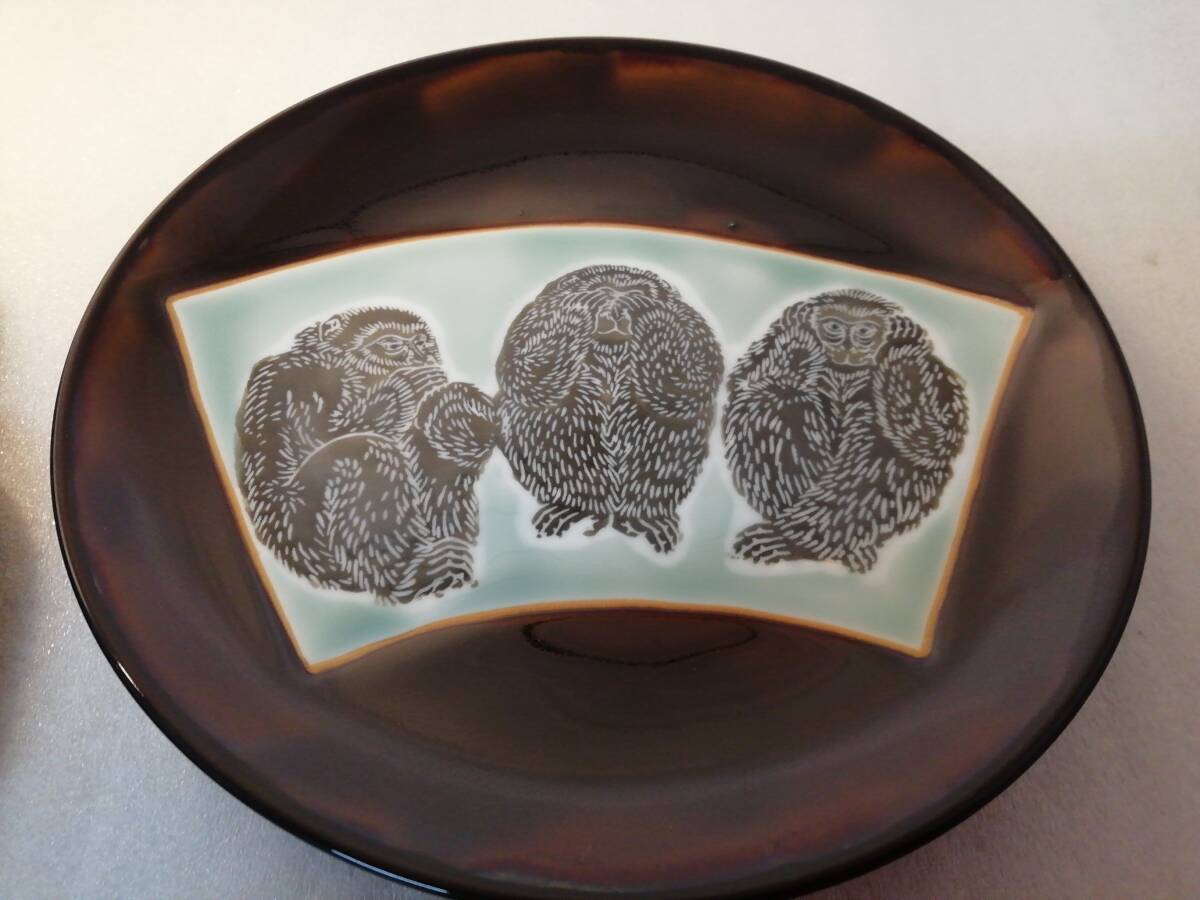 - ◆飾り皿 秀峰 作◆【 三猿~見ざる言わざる聞かざる 直径25㎝ 】◆