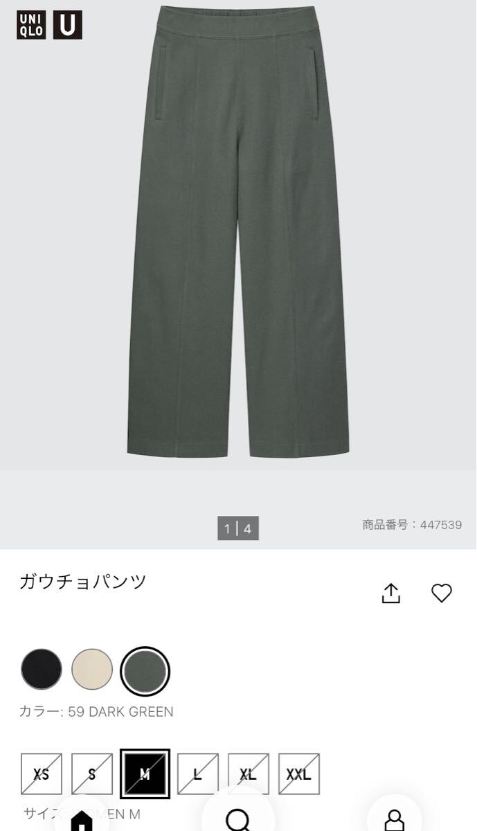 - UNIQLO U ガウチョパンツ ダークグリーン サイズM