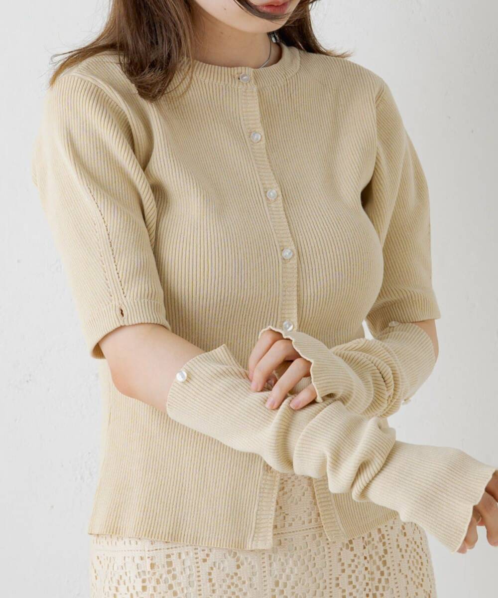 - 新品・未使用♪kastane≪カスタネ≫♪アームウォーマー付リブニットカーディガン アイボリー♪フリーサイズ♪