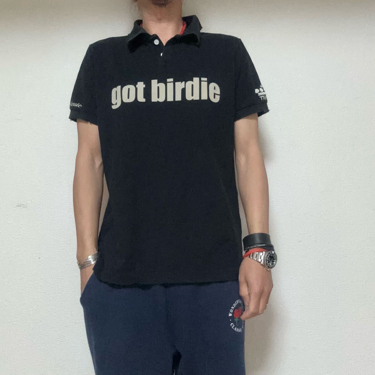 > 日本製tmt classic ゴルフウェア get birdieビンテージ加工ポロシャツM 黒 ブラック