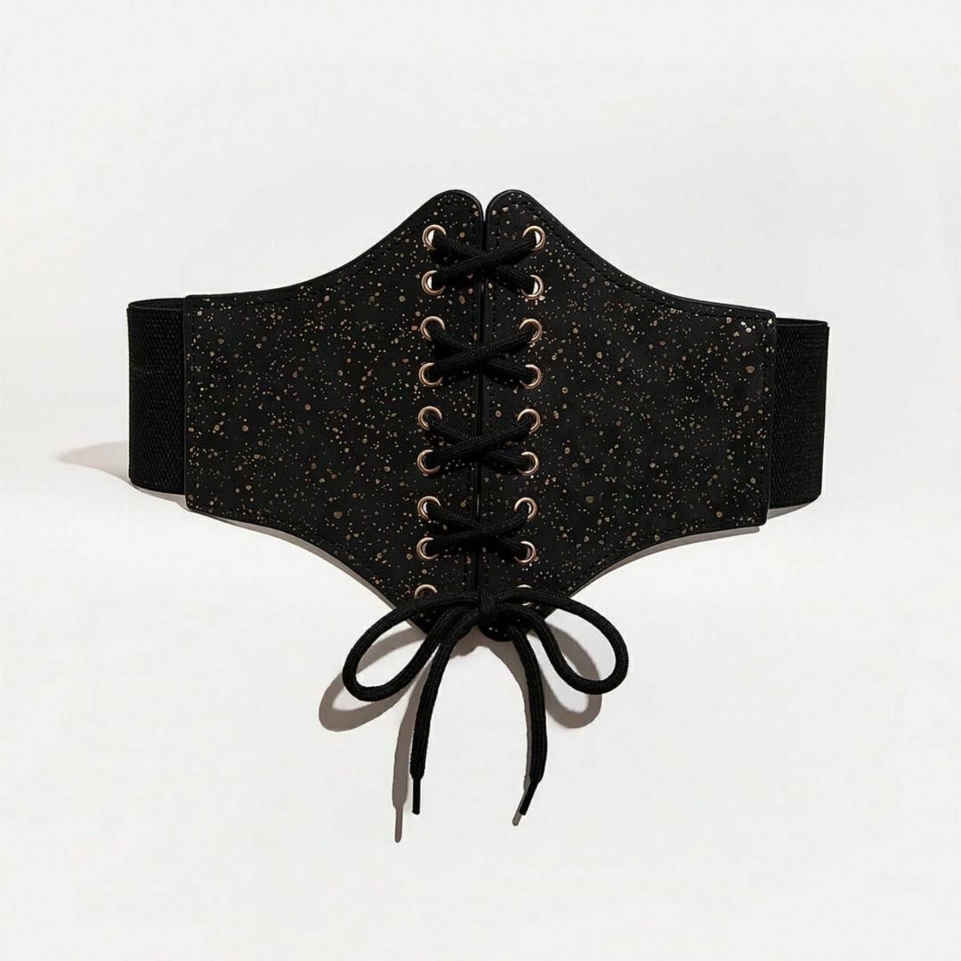 - 【ブラック】78cm~109cm 編上げ コルセット 幅広ゴムベルト