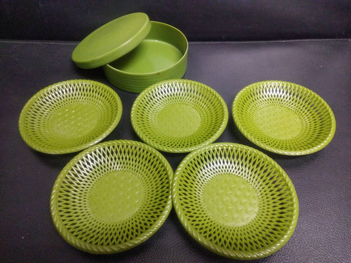 > 《食器》 茶器「プラスチック製の茶托:5枚セット ケース付き」 円直径:約10.4cm・高さ:約1.5cm 茶たく コースター