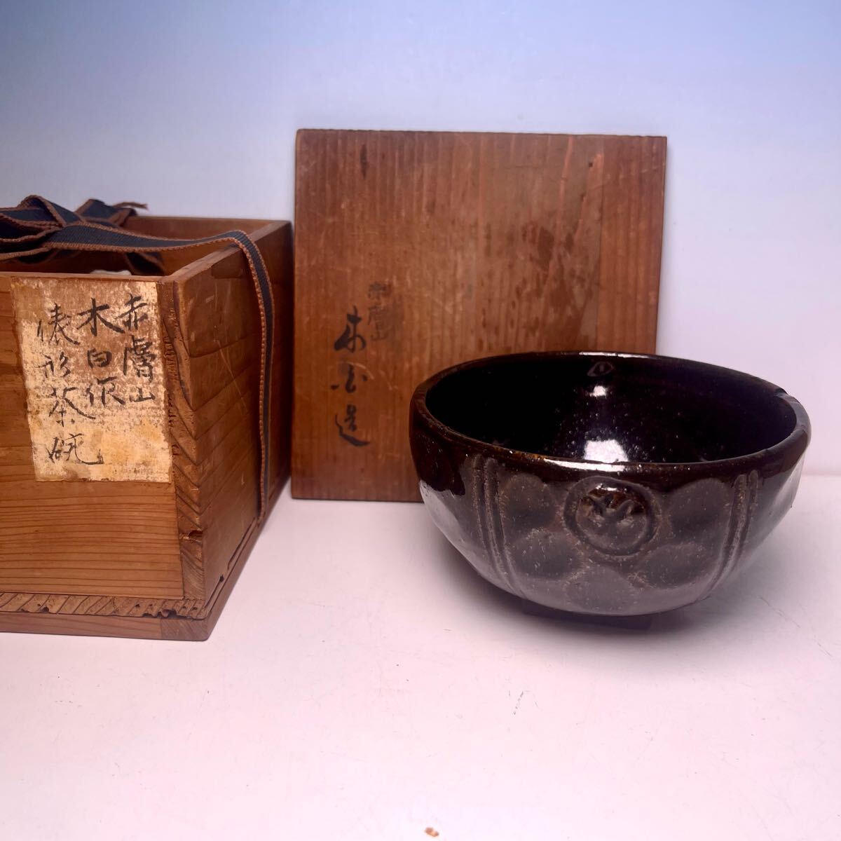 - ☆茶道具 奈良 赤膚山 名工 奥田木白 造 俵形茶碗 (共箱)赤膚焼