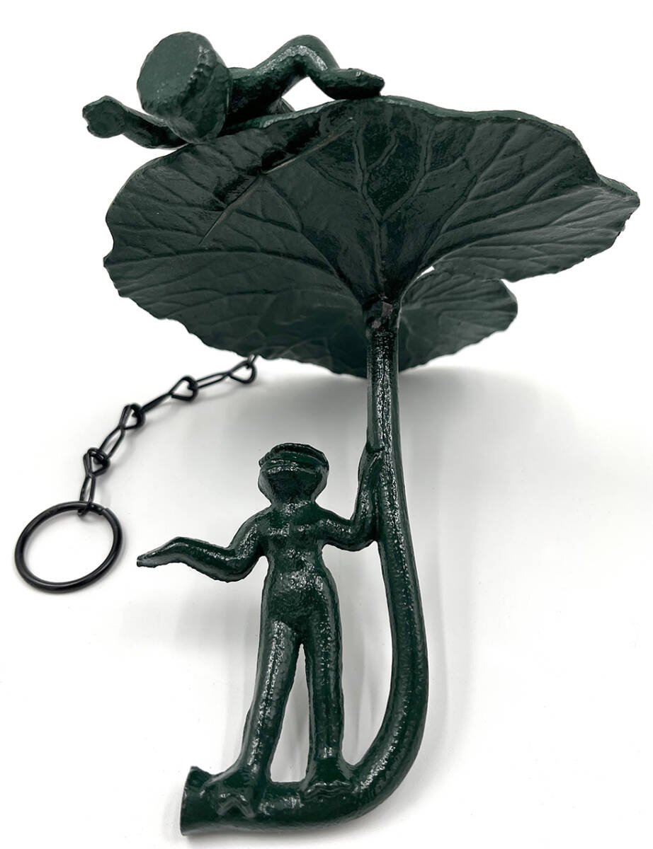 - ★貴重 南部鉄器 河童 男女 葉っぱ 傘 雨宿り 吊るし 吊り下げ レトロ ビンテージ インテリア 壁掛け 妖怪 カッパ 2j