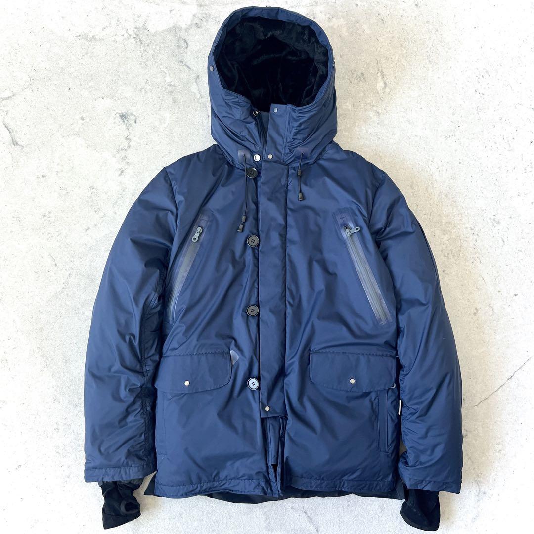 > 高品質☆ MINOTAUR ミノトールインスト 日本製 Mサイズ N-3B型 テック系 フード付き ダウンジャケット 青 ネイビー