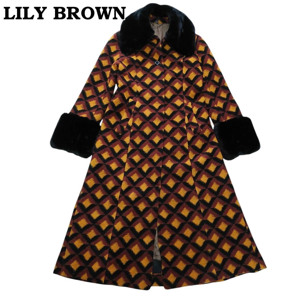 - 未使用 LILY BROWN レトロ ファーロングコート 幾何学模様 リリーブラウン 250126-03