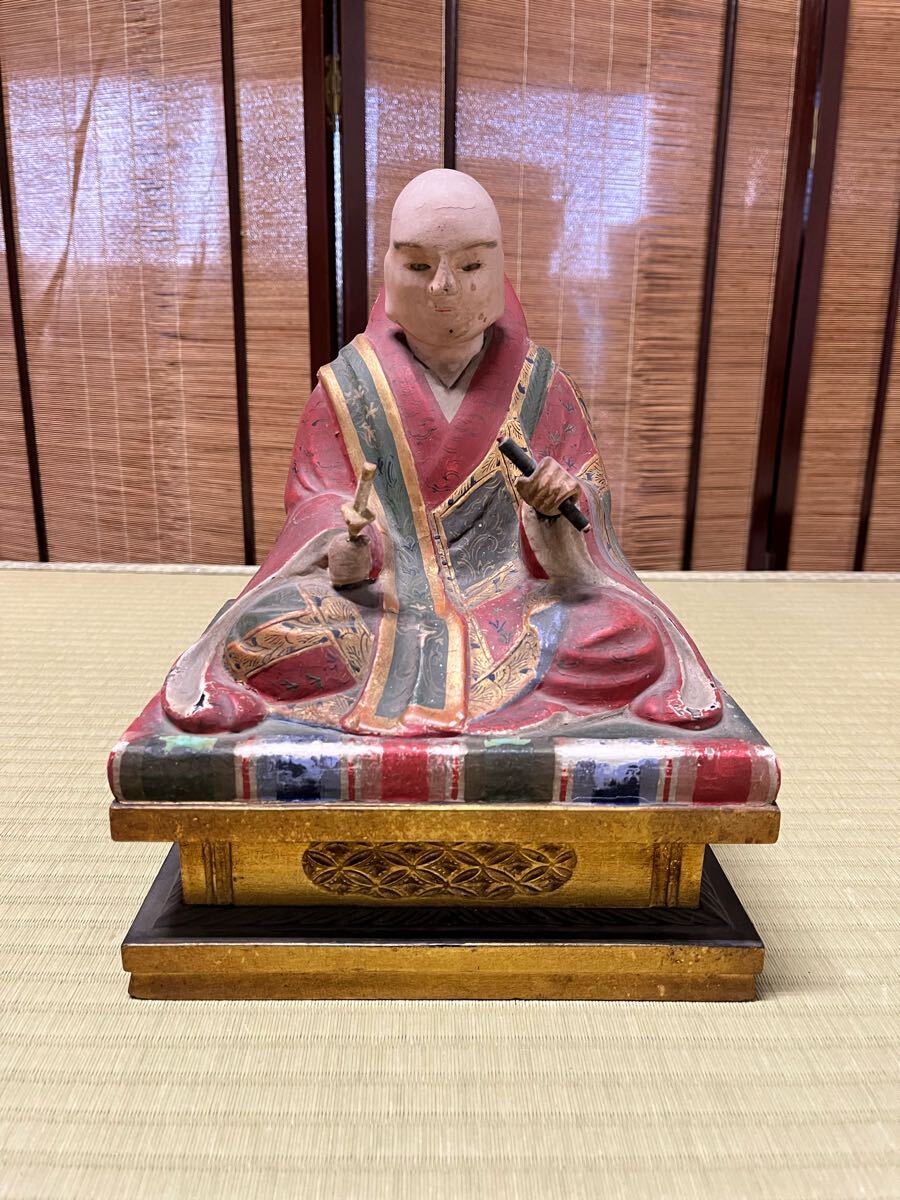 - 時代物 玉眼入 日蓮聖人 木造 彩色 坐像 旧家 蔵出し