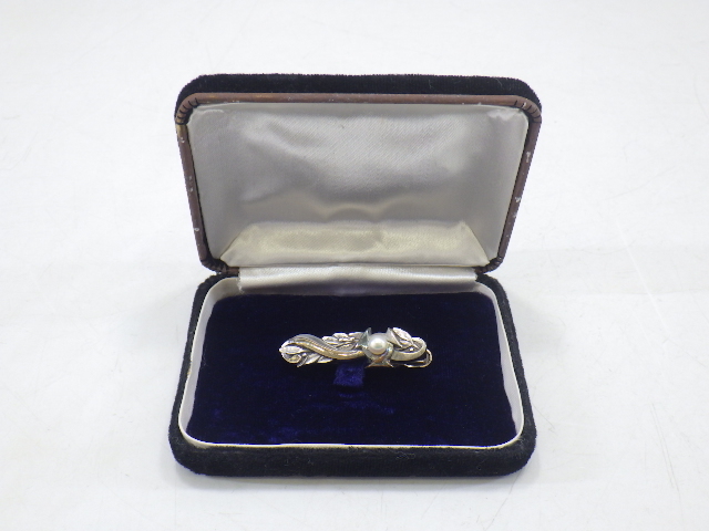 - h5B020Z- 昭和32年 公旅連優良従業員表彰 金張 SILVER パール付き タイピン