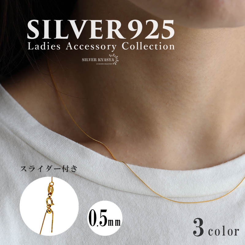 - (ローズゴールド) シルバーなのに安い 使える925 18KGP チェーンネックレス スライダー ローズゴールド