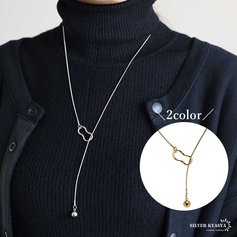 - (ゴールド) ステンレス マンテルネックレス ボール 18KGP 金属アレルギー対応