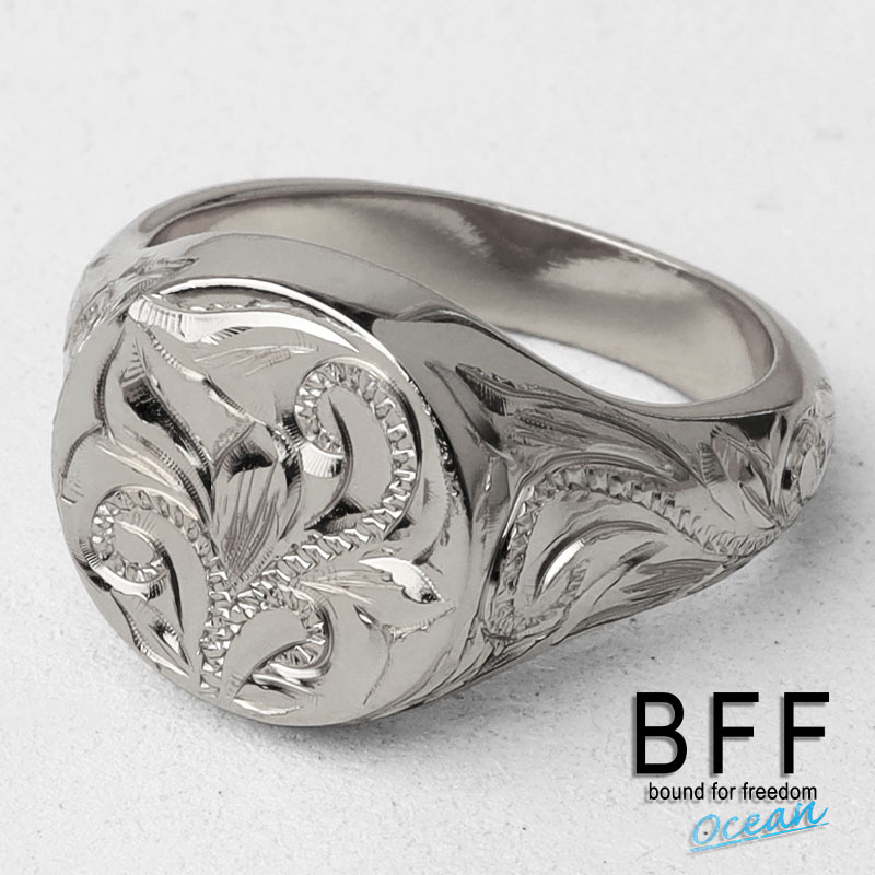 > (7号) BFF ブランド 印台リング メンズ 丸型 指輪 シルバー925 シルバー 手彫り 金属アレルギー対応 専用BOX付属