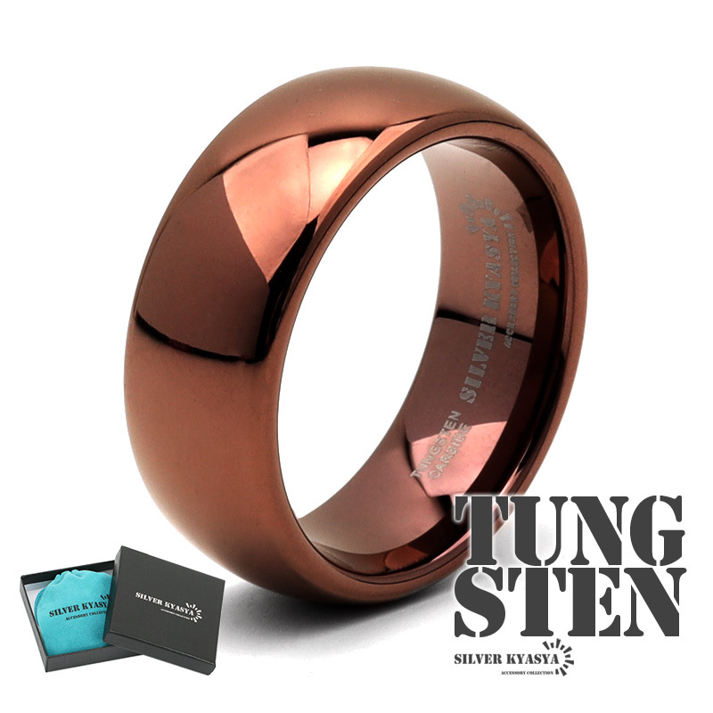 - (19号) タングステン 甲丸リング 指輪 メンズ リング ブラウン 茶色 シンプル 金属アレルギー対応 専用BOX付属