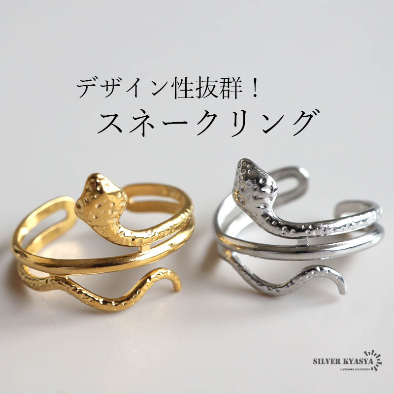 - (ゴールド) スネークリング 巻き付く 蛇リング 3連 18KGP ステンレス 槌目模様 個性的 フリーサイズ アレルギー対応