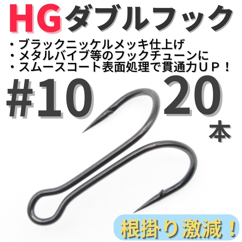 - 【送料無料】HGダブルフック ブラック #10 20本セット ハイグレードフック ソルト対応 メタルバイブ バイブレーション フックチューンに!