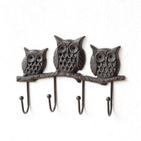 - フック 壁 4連 壁掛け アイアン 引っ掛け おしゃれ 玄関 鍵掛け キーフック アイアン3匹の梟フック 送料無料(一部地域除く) swa8238