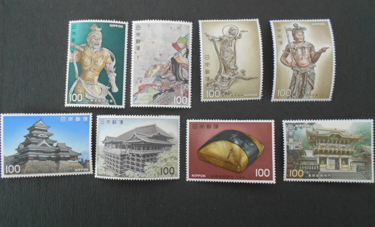 - 第2次国宝第1集~8集100円切手 いろいろ8種類 未使用100円切手8枚