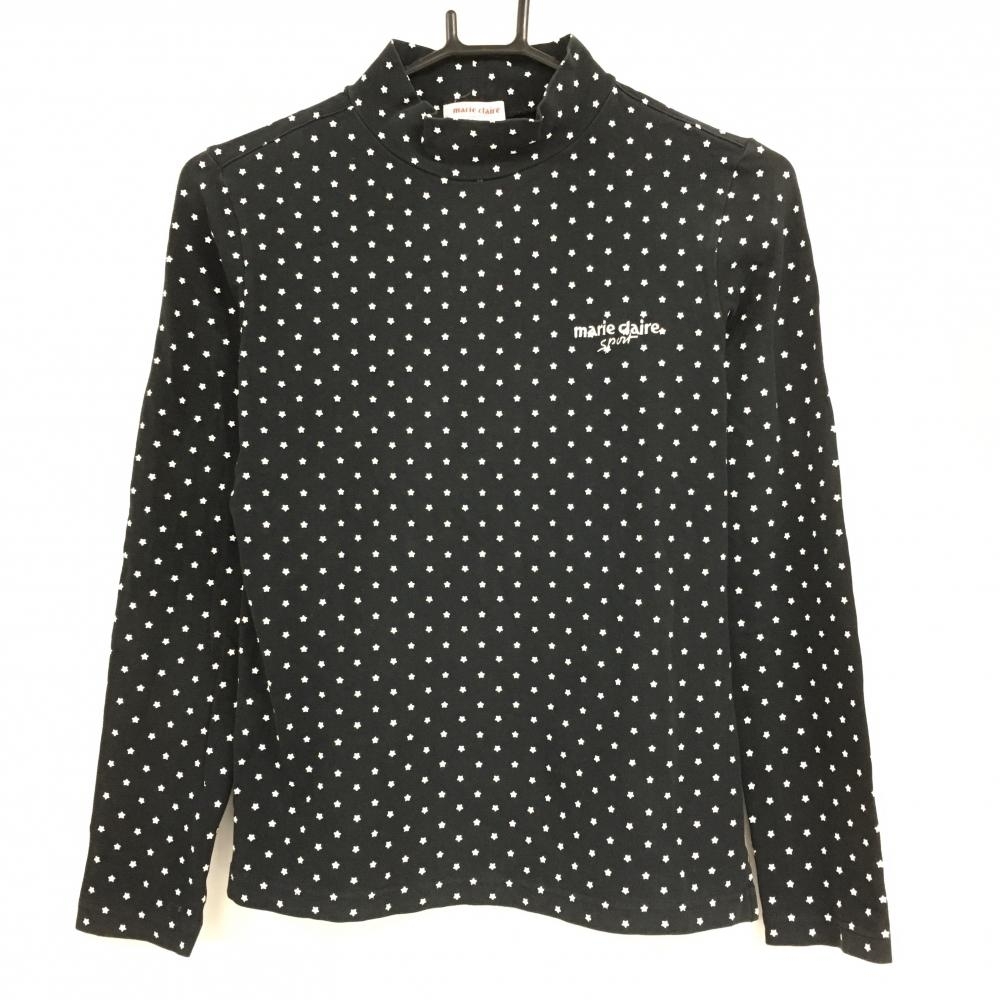 > マリクレールスポール 長袖ハイネックシャツ 黒×白 星柄 スター レディース M ゴルフウェア marie claire