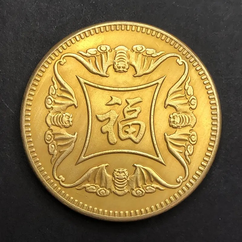 > 「福」のシンボルが施された本格的な金メッキの風水ラッキコイン-幸運/金運・全体運・恋愛運全てに強運を財布に是非勿論重みがあり高級感も