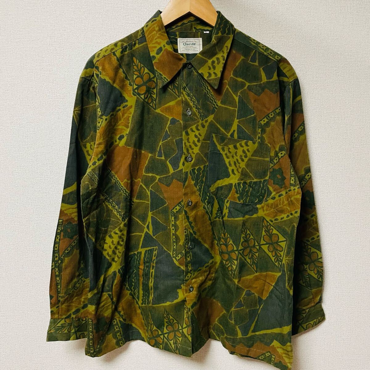 - ヴィンテージ ビンテージ シャツ 長袖 総柄 古着 個性派 日本製 メンズ L