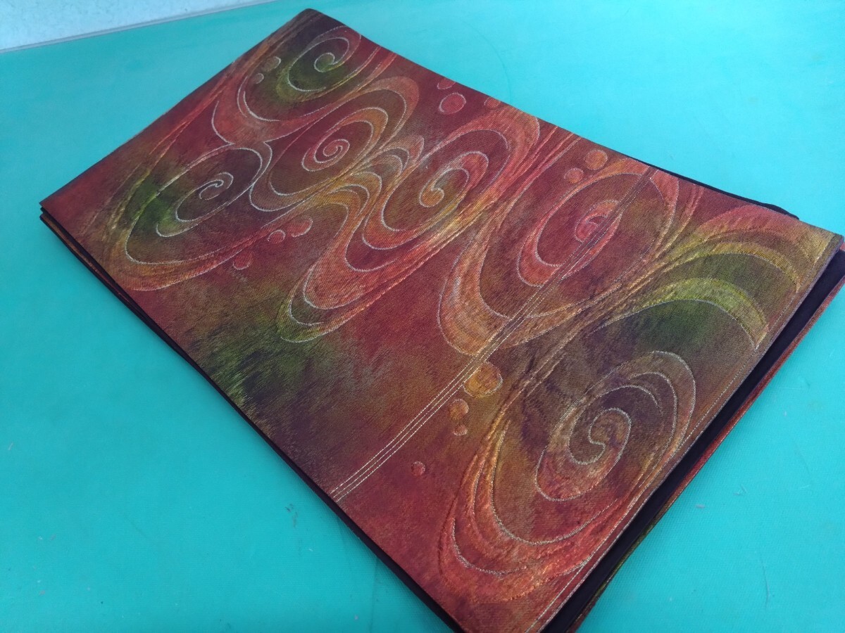 - ● 32 高級 袋帯【金銀糸箔 】 立体 凹凸 膨れ グラデーション 夕焼け 黄昏色 茜色 水紋 流水 波紋 紋様 煌 雅 豪華絢爛 六通 帯 中古 ③
