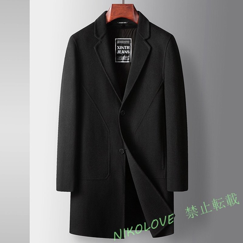 > ☆新品ビジネスコート ロングコート ウールコート セレブ WOOL 厚手 カシミヤコート 紳士スーツ チェスターコート ブラック XL~4XL LK360