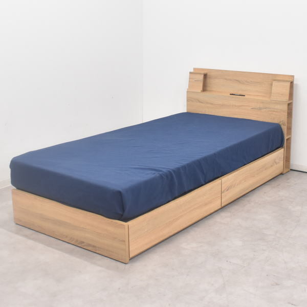 - 【限定送料無料】照明 コンセント 引き出し収納付き シングルベッド アウトレット家具【新品 未使用 展示品】0033644