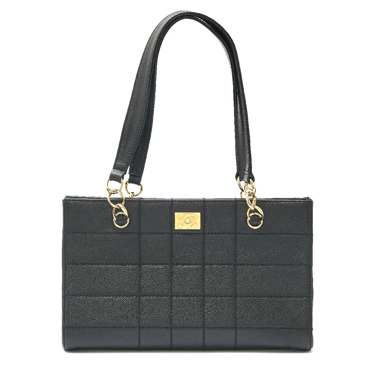 - CHANEL シャネル チョコバー トートバッグ 7番台 2WAY ハンド ショルダーBAG キャビアスキン ブラック×ゴールド金具 レディース