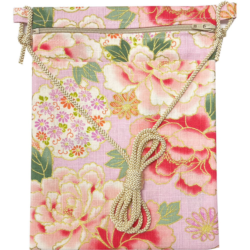 - お祭用品 ポーチ大寸 牡丹金彩 R2507-50鴇色 ショルダー/小物入れ/和柄