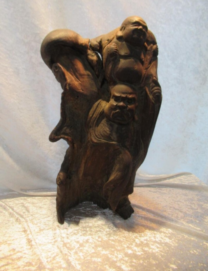 - 【仏像・仏具】仏像 達磨と布袋さま 木彫 素材を活かした一刀彫 珍品 古いものです ディスプレイ用品 インテリア用品 骨董品 アンティーク