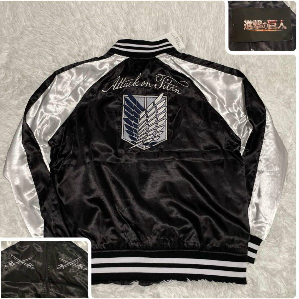 - 新品 タグ付 進撃の巨人 スカジャン 限定 ブルゾン ブラック L エレン リヴァイ 刺繍