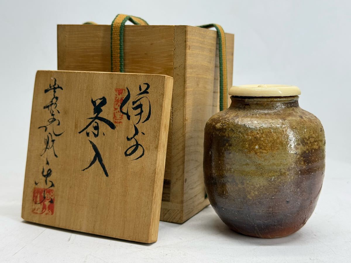 - 藤原楽山 備前 茶入 胡麻 窯変 共箱 茶道具