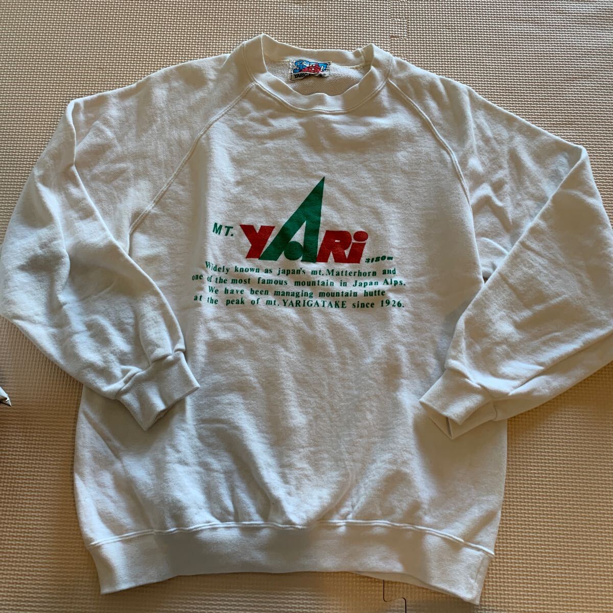 - 90s【槍ヶ岳】槍ヶ岳山荘 ラグランスウェット 古着 アウトドア ホワイト アウトドア 登山 日本製
