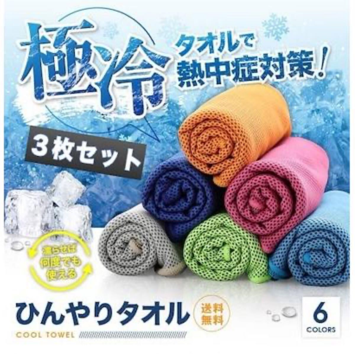 - クールタオル 3枚セット ひんやりタオル 冷感タオル 熱中症対策 スポーツタオル 50