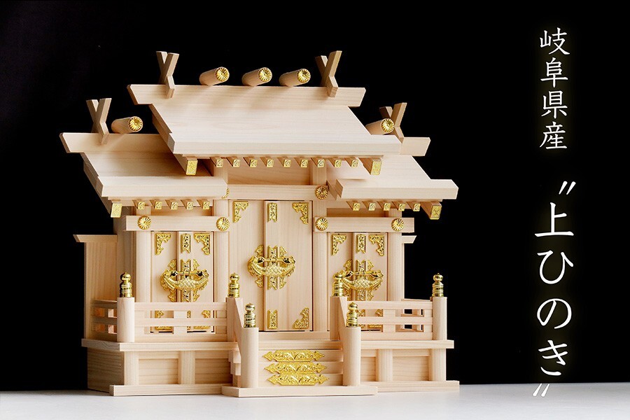 - 美しい、東濃ひのき 屋根違三社 特小 三社 神棚 サイズ約 (cm) 高さ34.5 幅40 奥行18.5