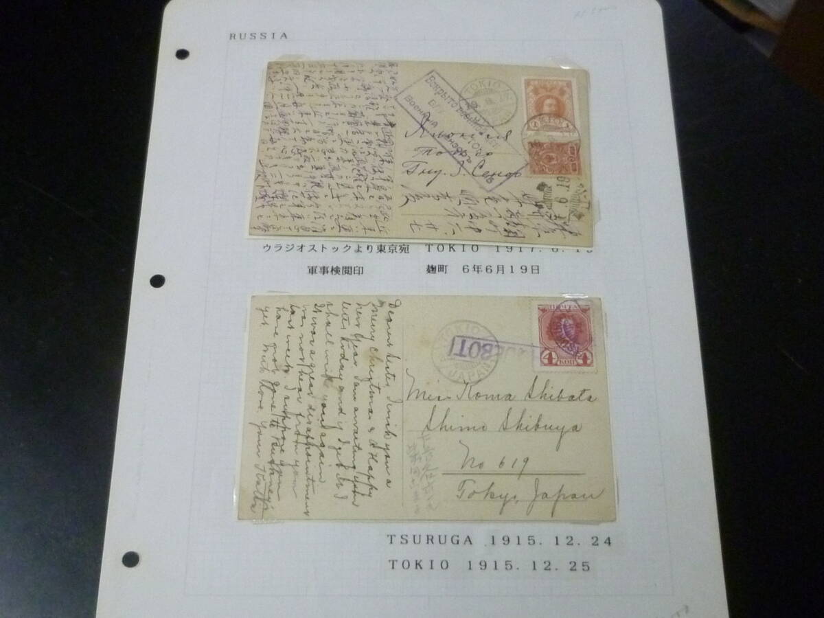 - 25F A №17 ロシア切手 葉書 1915年 SC#88・91貼 軍事検閲印付含 計2通 日本宛 ※説明欄必読
