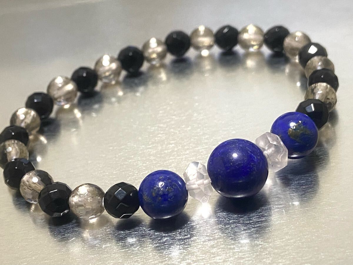 - オニキス ラピスラズリ スモーキークォーツ ローズクォーツ ブレスレット天然石 16cm パワーストーン 天然石ブレスレットM